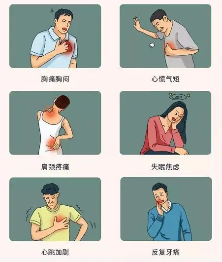 1.胸痛:这是最常见的信号,一旦胸部突然出现剧烈、紧缩、压榨性的疼痛,感到透不过气或出冷汗,持续时间超过30分钟仍不缓解,要高度怀疑急性心肌梗死,需要立刻就医。