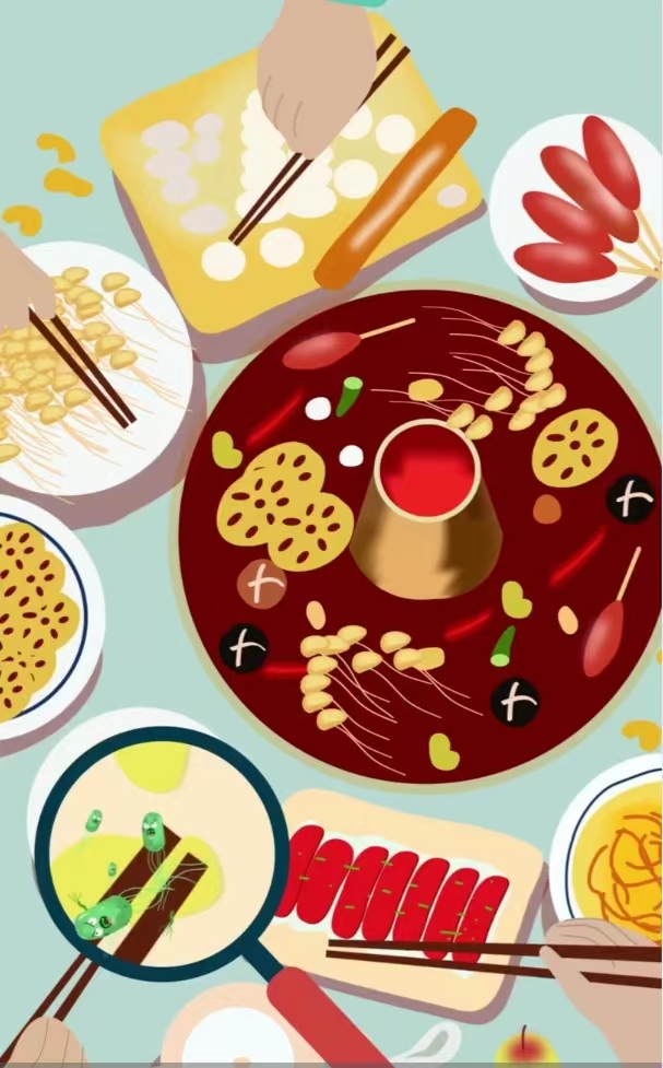 公用餐具:它会被粘到食物上,然后到人的胃里定居。