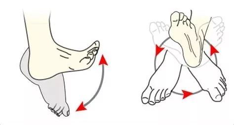 2、以踝关节为中心,脚后跟撑地做顺时针和逆时针旋转运动,每组10次,一天4-6组即可。