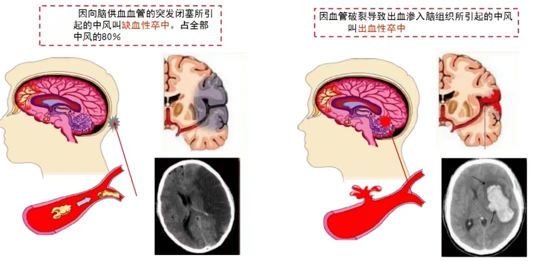 脑卒中俗称“中风”,是一种急性脑血管疾病,是由于脑部血管突然破裂或因血管阻塞导致脑组织损伤的一组疾病。分为缺血性脑卒中(占比80%)和出血性脑卒中(占比20%)。脑卒中发病急、病情进展迅速、后果严重。还可导致肢体瘫痪、语言障碍、吞咽困难、认知障碍、精神障碍等。