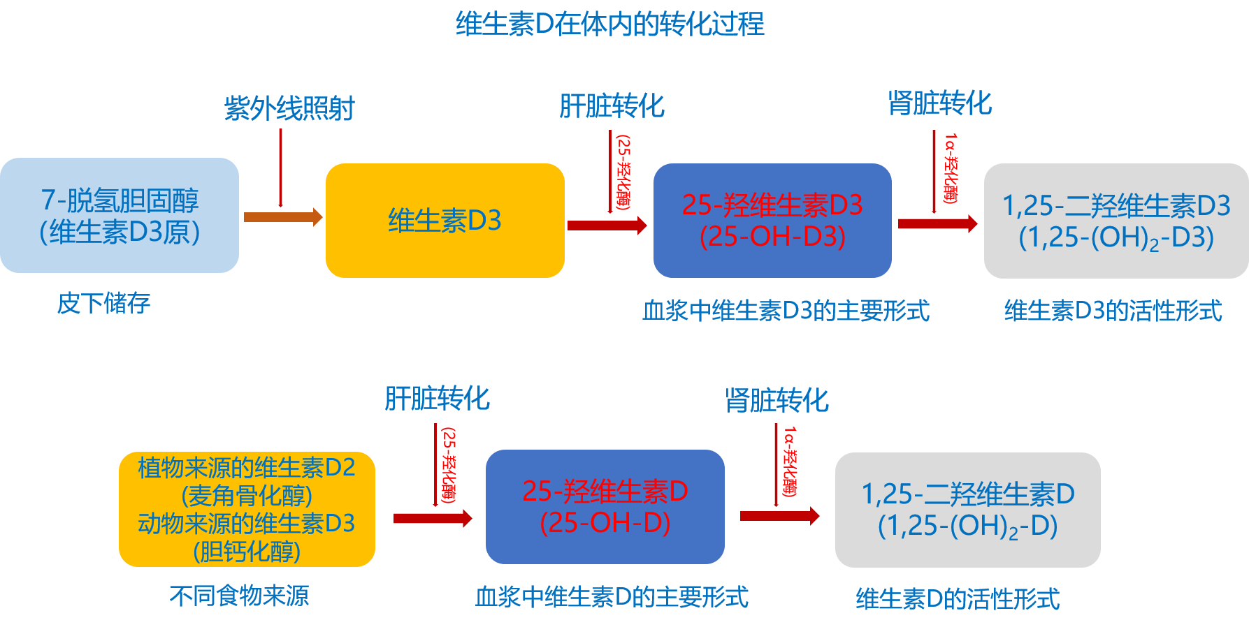 维生素D体内转化过程如下图所示。