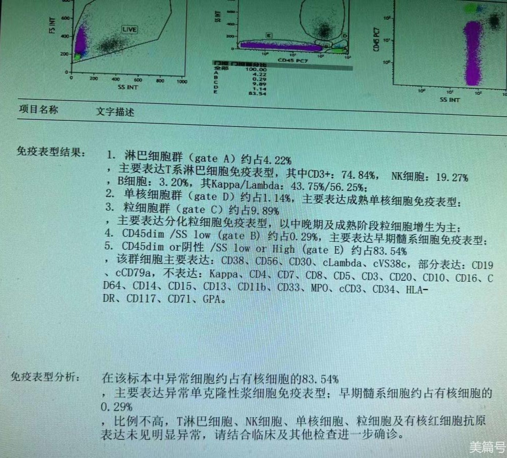 免疫分型结果显示异常细胞比例83%,主要表达单克隆浆细胞表型。