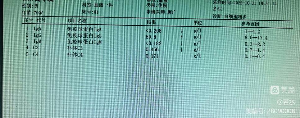 免疫球蛋白IgG增高。