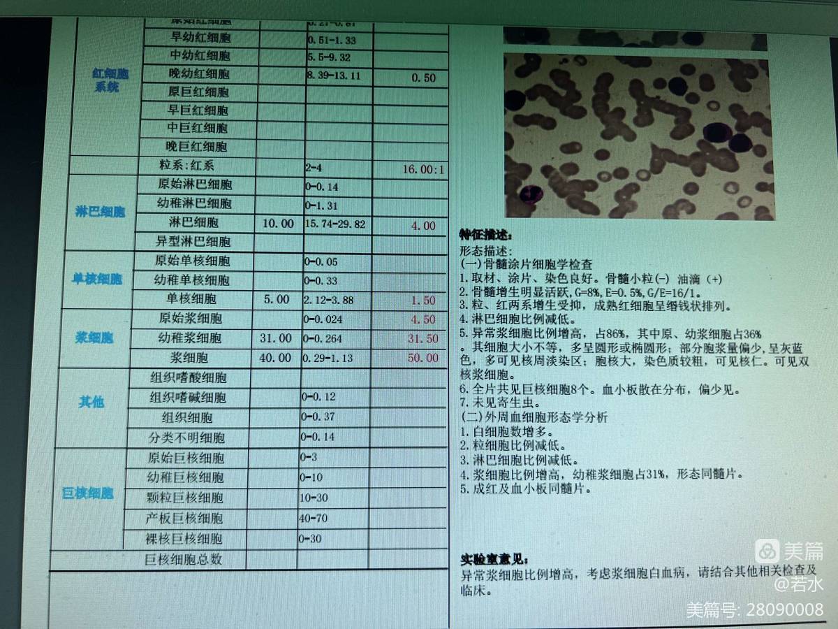 发现红细胞缗钱状排列,一枚标准的浆细胞!