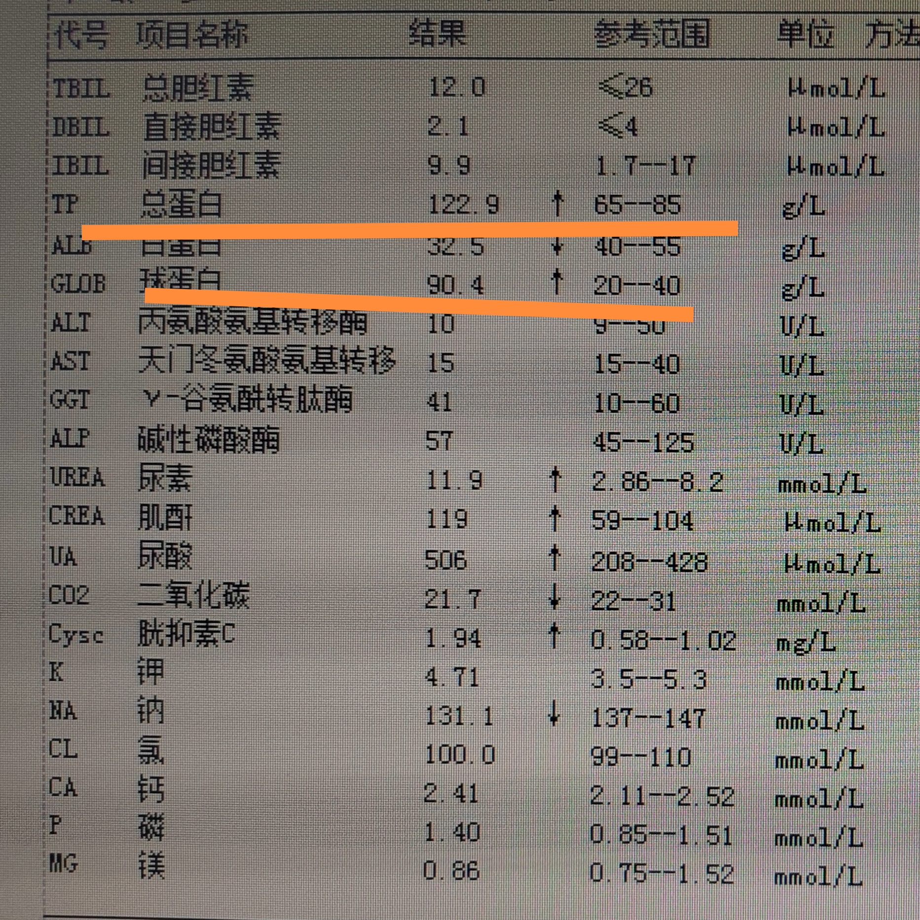 生化结果显示总蛋白与球蛋白偏高!