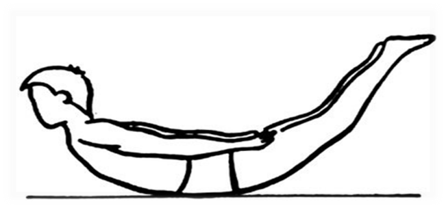 3.“燕飞式”:俯卧位,腹部支撑,双上肢,双下肢及头部尽量后伸。该方法对腰背肌肉力量要求较高,可在上述锻炼的基础上进行的强化锻炼。