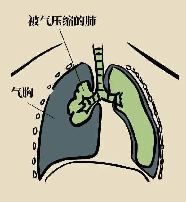 对于胸腔少量积气,无明显胸闷、胸痛呼吸困难的病人,无需特殊处理,胸腔内积气一般在2周内可自行吸收。大量气胸必须立即进行闭式胸腔引流术,通过胸壁在胸腔里放入一根引流管。当把积气从胸腔里引出来,以减轻积气对肺和纵隔的压迫,促进肺尽早膨胀,同时应用抗生素预防感染。等到肺自己把漏口补上了,不再漏气了,就可以拔掉胸腔引流管,病人也就算治愈了。