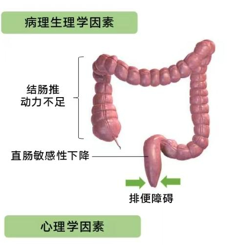 功能性便秘的原因复杂多样,遗传、生活方式、饮食、肠神经系统功能障碍、神经递质的改变和心理因素都是其发生的因素。这些因素可能导致结肠推动力不足、直肠敏感性下降和排便障碍。