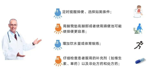 包括患者的健康教育,解除顾虑,定时排便,使用蹲便或排便时垫高腿部,增加饮水和体育锻炼等。是便秘治疗的基础。