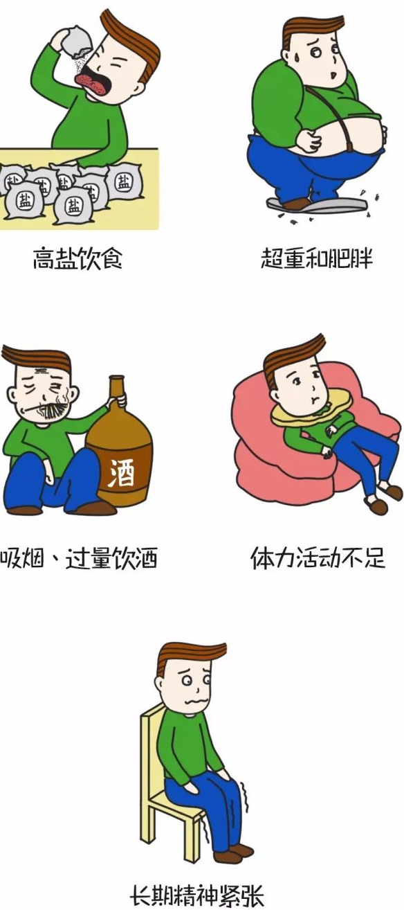 诱发高血压的危险因素很多,下面是我们常见高血压因素: