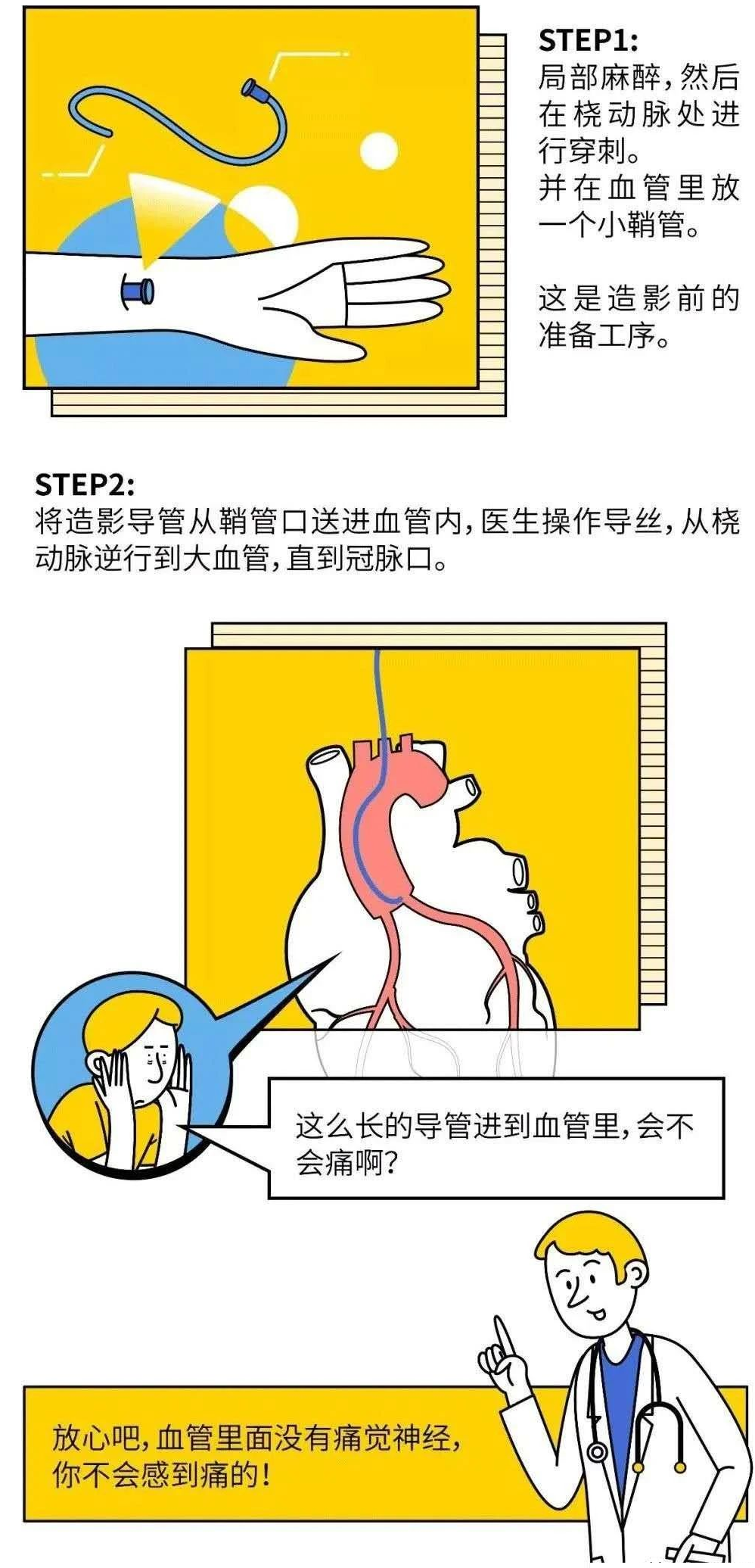 如果桡动脉行不通,有时造影穿刺会在大腿内侧的股动脉进行。股动脉比较粗,更便于操作,但患者术后需要24小时卧床不能活动,大小便也不方便;手腕桡动脉穿刺难度高,对医生技术要求也较高,但患者创伤小,术后可以自由活动。