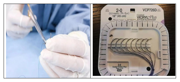 2、单针与多针包装:现在的外科缝合已经越来越多的采用带针缝线了,这样可以节省很多穿针引线的时间。