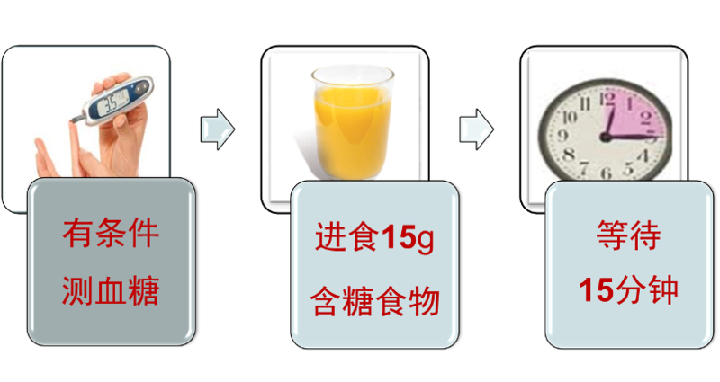 记住两个“15”(进食15克碳水化合物,每15分钟测血糖一次)。