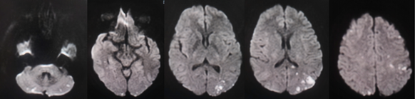 上图所示MRA可见脑动脉未见明显异常,未见狭窄与斑块。DWI所见:双侧小脑半球、胼胝体压部、双侧额顶枕叶多发急性、亚急性梗死。结合临床病史,考虑特鲁索综合征。