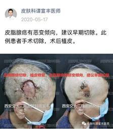 皮脂腺痣多数为良性,如果面积小,生长速度缓慢,可暂时观察;如果生长在面部影响美观,可学前期处理;但那些一出生面积就比较大的,建议青春期前处理,而且越早越好,毕竟它会随人生长,特别是出现那些疣状或结节状突起后,容易藏污纳垢,细菌和灰尘对其是一种不良刺激,增加恶变风险。研究显示,皮脂腺痣继发肿瘤的发生率为13%~21.4%。其中继发最常见的良性肿瘤是毛母细胞瘤(7.4%),其次是乳头状汗管囊腺瘤(5%),继发的恶性肿瘤常见的是基底细胞癌(1.1%),另外一种是原发性皮肤大汗腺癌更为罕见。