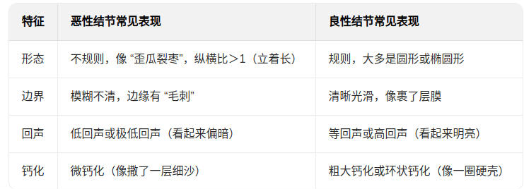 体检时做的甲状腺超声,是判断结节“好坏”的第一道关卡。拿到超声报告不用死磕专业术语,重点看以下这4个关键特征,就能初步心里有数: