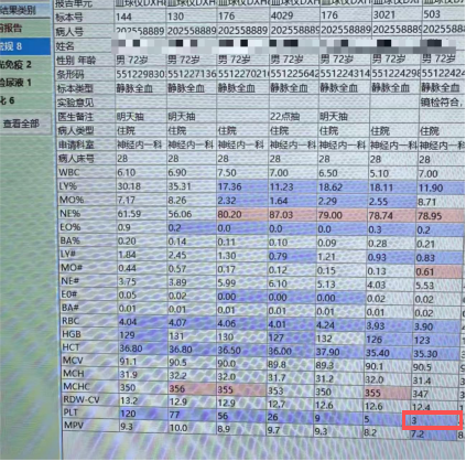 24号中午11.30医生对该患者使用了药物,后于下午四点左右复查血常规结果如下: