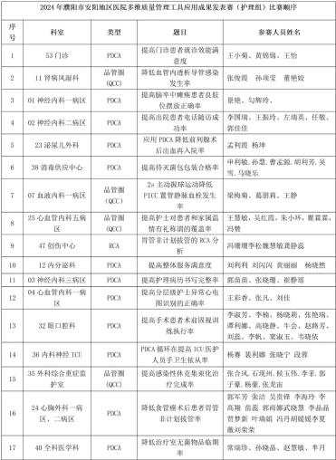 为贯彻国家卫健委《全面提升医疗质量行动计划(2023-2025年)》的通知精神和落实关于医疗质量管理控制工作的有关举措,推动医院多维管理工具应用的新发展,持续提升护理质量管理的科学化、专业化和精细化水平,医院特召开护理质量安全管理委员会,制定《2024年护理质量安全提升月活动方案》。