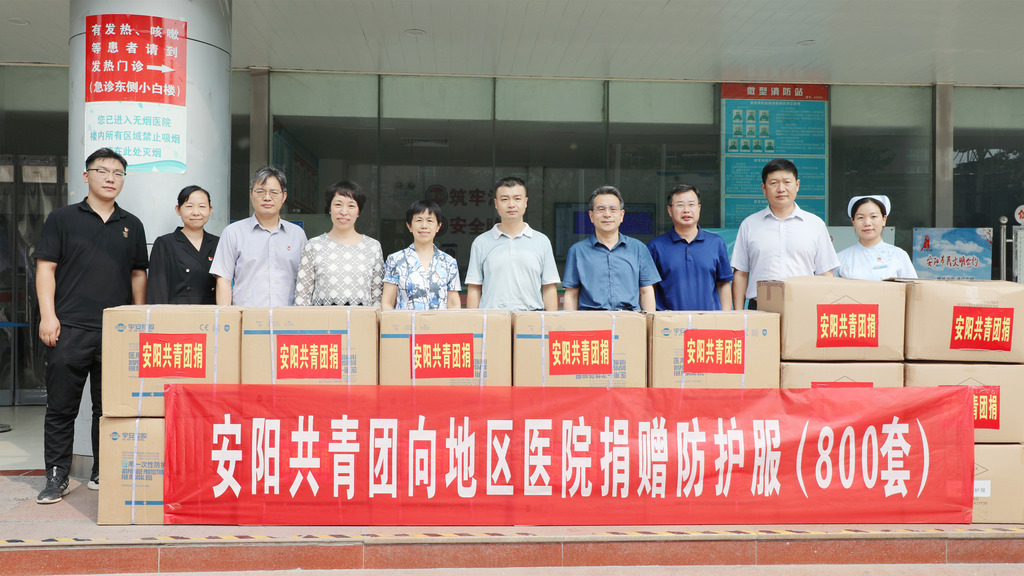9月14日,共青团安阳市委携手市青年联合会向我院捐赠医用防护服600套、普通防护服200套。