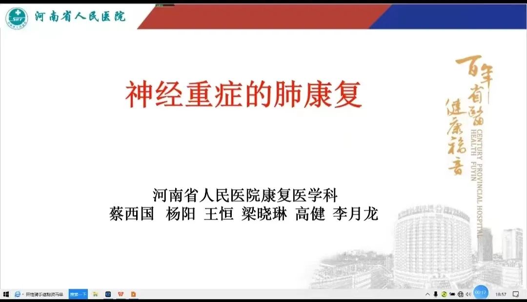 河南省人民医院康复医学科蔡西国教授,对与会人员进行线上授课,分享了“神经重症的肺功能康复”的内容。