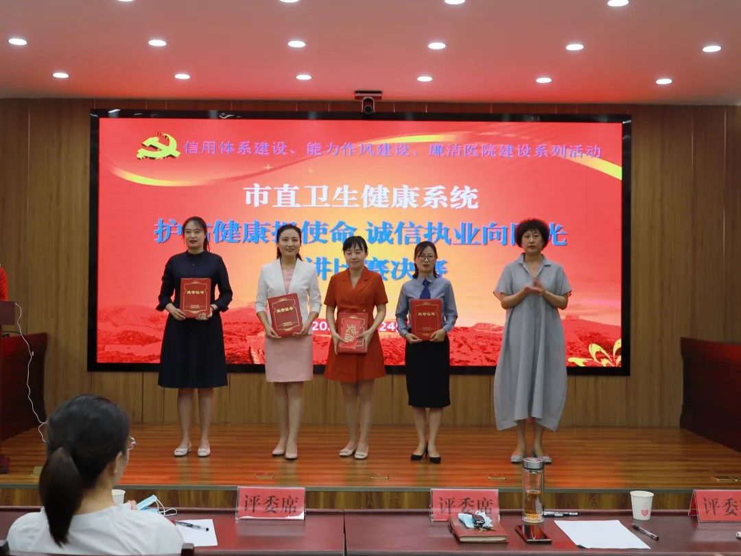 8月24日,濮阳市卫生健康委组织开展了市直卫生健康系统“护佑健康担使命 诚信执业向阳光”演讲比赛,我院经过院内选拔,选派耳鼻喉科孟娇、感染防控科楚文静、财务科魏韶三名选手参赛。