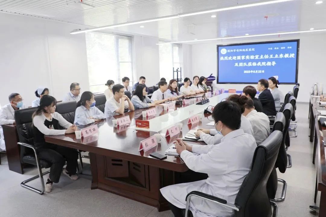党委书记刘勇波致辞并总结讲话,他代表濮阳市安阳地区医院领导班子及全体干部职工,对王立东教授团队莅临我院调研指导工作表示热烈地欢迎和衷心的感谢!他指出,临床科研是医学研究的重要组成部分,是推动医院高质量发展的重要支撑和保障,省委书记楼阳生到我省部分医院、高校、国家区域医疗中心调研指出,要敢于把难题当课题,以临床需求引领基础研究,以基础研究提升临床诊疗水平,不断探索新技术,产出新成果,实现新突破。创新型服务和创新型技术是未来医院发展的命脉,临床科研工作是保证双创成功的基石。只有培养我院大批科研人才,全面提升医院科技创新能力,才能更好的服务人民群众,我院会坚定不移的走科技兴院的道路,以临床科研为引领,全面推进我院高质量快速发展。