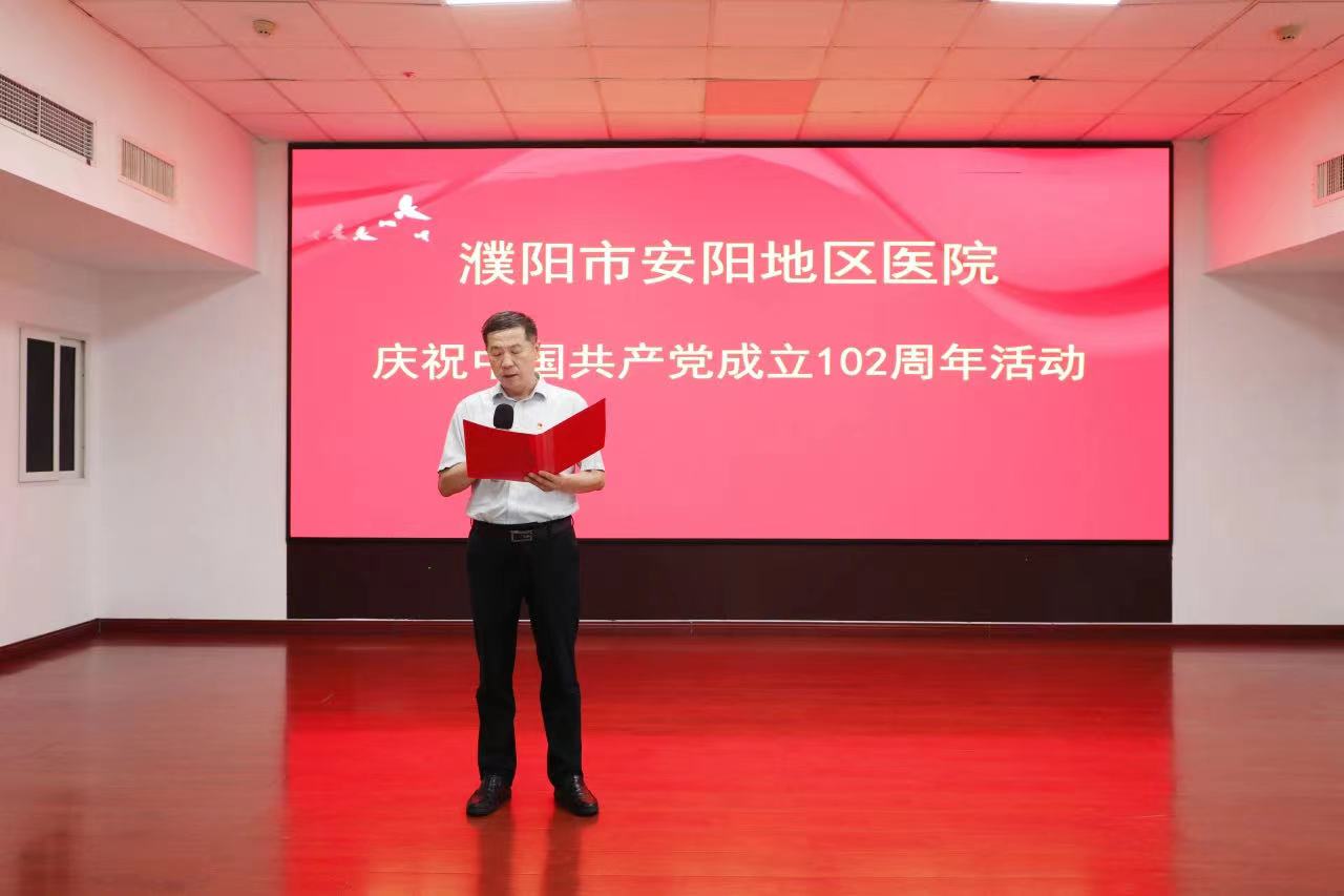 刘书记强调,今天,我们齐聚一堂,隆重纪念建党102周年,庆祝党的生日,激发奋斗力量。希望全体干部职工以此活动为契机,坚定为党工作、为民服务、为医院做贡献的信念,在各自岗位上践行初心使命。