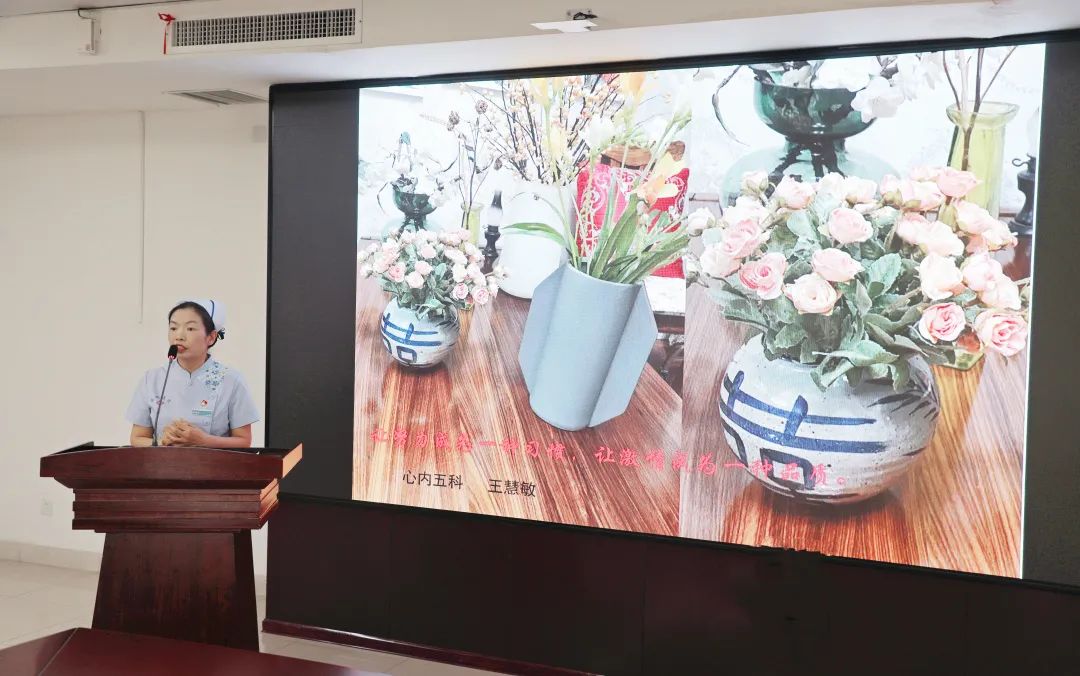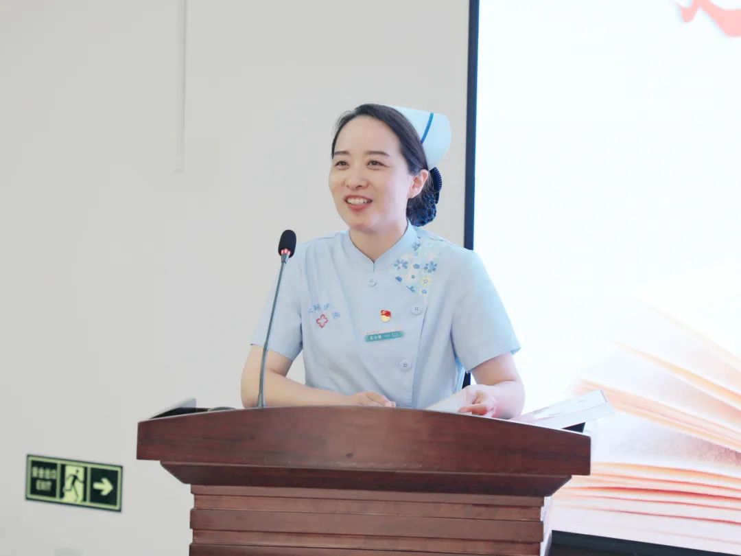 呼吸与危重症医学科护士长邢利英为大家分享作品《心中有火,眼里有光》,她用方志敏的事迹作为开篇引导,让我们明白了不同的人生观、价值观给我们每个人带来的生活也是截然不同的,有人利益至上,有人甘于奉献,建立正确的三观才能体会到真正的幸福,只要为自己埋下一粒为国、为家奋斗的火种,你的人生一定会绽放不一样的光芒。