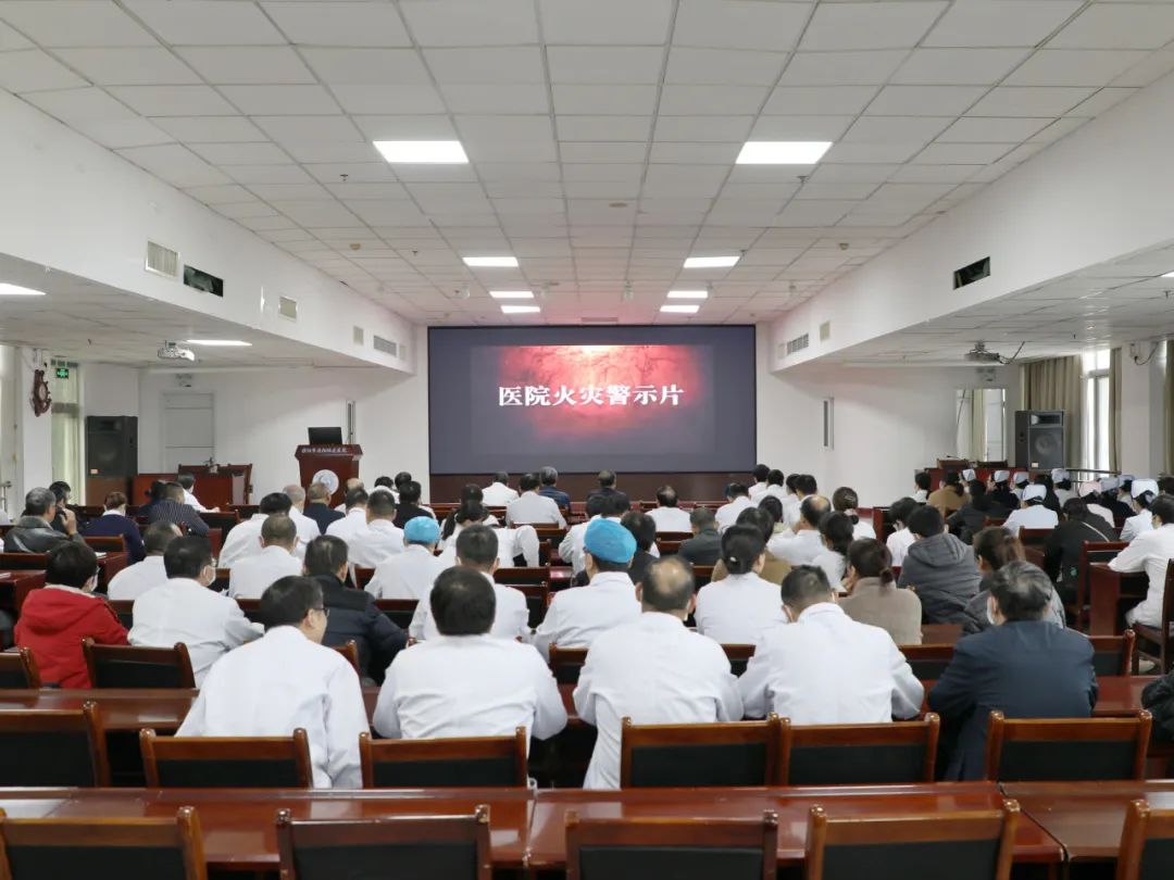 会前,与会人员集体观看火灾警示教育片。结合近年来各地医院火灾事故案例,模拟还原了火灾发生的原因,用触目惊心、教训惨痛、发人深省的案例,提高全体职工对安全生产及消防安全的思想认识。