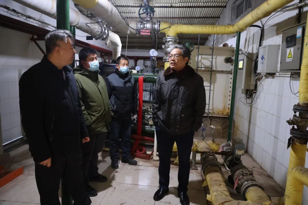 张院长一行先后来到配电室、氧气站、营养餐厅、高位水箱室、热力交换站等点位实地查看防寒措施落实情况。