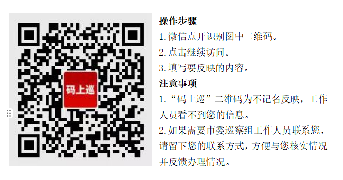 市委第七巡察组巡察濮阳市安阳地区医院党委期间设专门联系电话:18039373836,邮政信箱:河南省安阳市A123号信箱,电子信箱:zgpyswxcz07@126.com,同时设置联系信箱8个:分别设在西院区及东院区大门口、门诊部、住院部。干部群众也可用微信扫描“码上巡”二维码向巡察组反映问题。以上信访渠道于2024年3月25日开通,5月7日关闭。