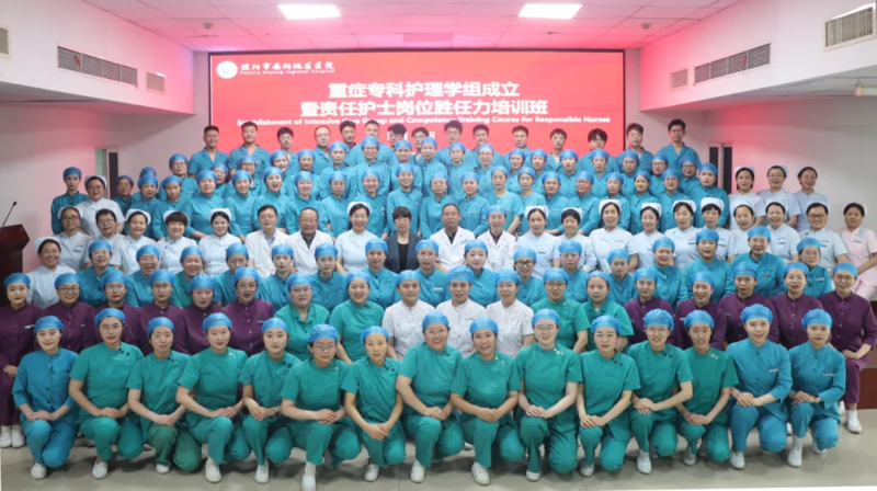 为提高重症护理人员的救治能力,大力发展专科护士队伍,提高专科护理水平,培养重症领域复合型人才,进一步推动我院护理事业发展,在院领导的高度重视下、护理部及重症专科护理团队的共同筹备下,6月3日下午,我院在门诊六楼会议室举行重症专科护理学组成立暨责任护士岗位胜任力培训班开班典礼。