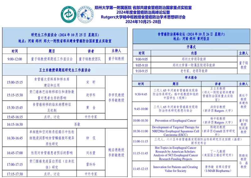 10月25日,安阳地区医院肿瘤科主任鲍启德受邀带领科研团队,赴郑州参加由省部共建食管癌防治国家重点实验室主办的2024年度食管癌防治高峰论坛,暨Rutgers大学杨中枢教授食管癌防治学术思想研讨会。