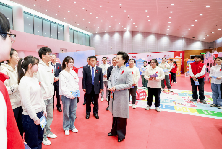 主题宣传活动前,彭丽媛等参观了“美好青春我做主”红丝带青春校园行十年历程展示,了解京津冀高校防艾宣传工作成效,同参加校园防艾宣传活动的大学生亲切交流,慰问医务人员、志愿者等,勉励大家继续携手努力,共同参与艾滋病防治工作,传递更多健康向上的防艾正能量,让艾滋病远离校园。