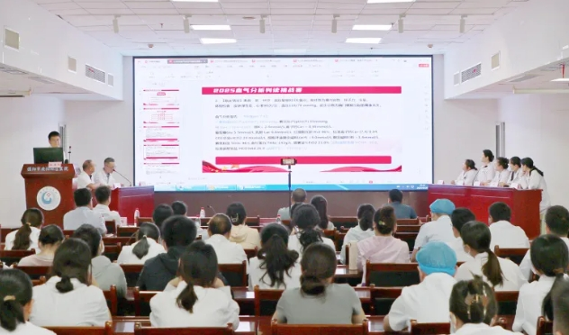 本次比赛由呼吸与危重症医学科二病区张海瑞主任命题,外科、综合ICU石现州主任、呼吸与危重症医学科连晓峰主任医师担当评委,经初赛脱颖而出的五位ICU选手:秦巍华、张彤薇、周洪艳、王跃花、呼营营参加此次抢答赛。比赛现场,台上选手们全神贯注,凝神判读复杂数据,争分夺秒间较量着诊断的精准与速度;台下观众们也积极发言,提出自己的见解。两位评委老师给予专业、详细的解题分析,呼吸与危重症医学科二病区张海瑞主任用自创的血气分析解读软件为我们快速呈现解题思路,充分展现了人工智能在临床实践中的高效及便捷。