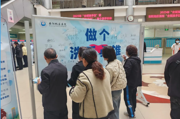 活动现场设置“洗手英雄签名墙”,医务人员、患者及家属、保安、保洁等群体纷纷驻足签名,以笔墨书写承诺,用行动宣告成为“洗手英雄”的决心,让健康责任在笔尖传递。