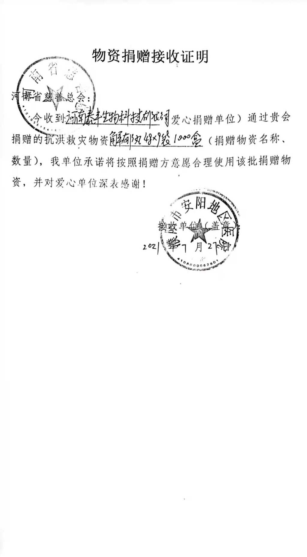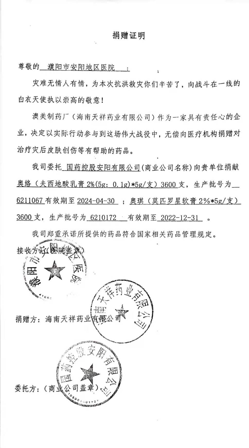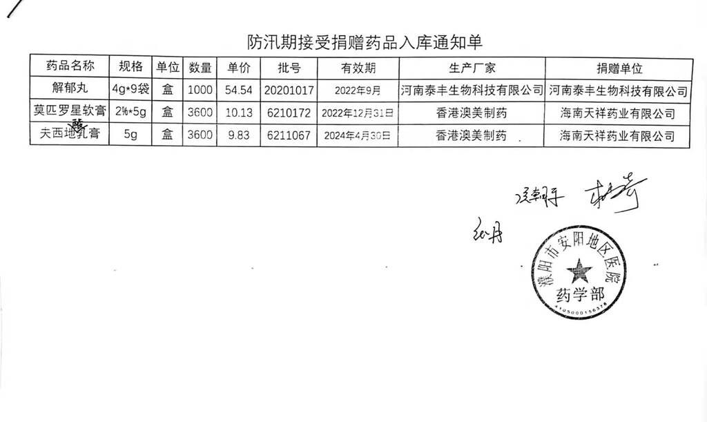 安阳地区医院接受捐赠物品公示