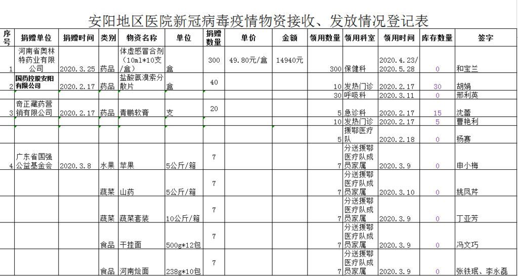 安阳地区医院接收疫情防控物资情况