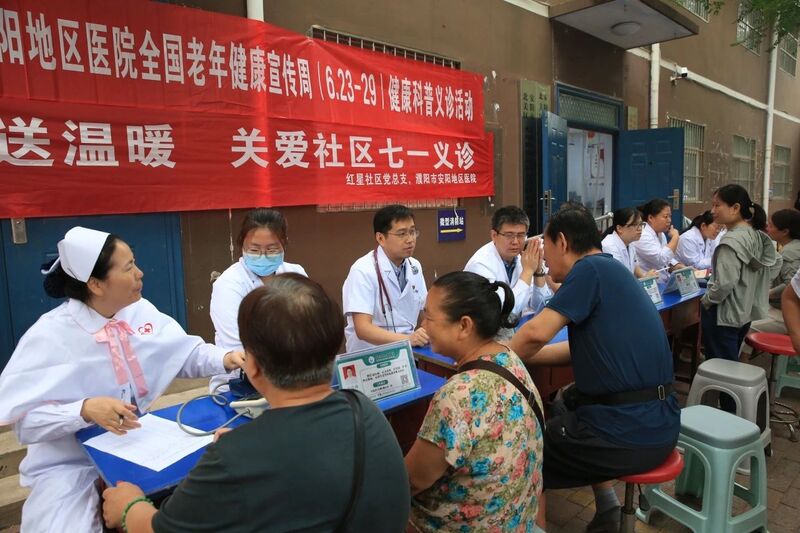党旗所指,医心所向。近日,我院组织党员干部和医护专家走进红星社区,开展庆“七一”健康义诊志愿服务活动。活动现场,医护人员耐心为居民提供面对面健康咨询,零距离解疑答惑,深入浅出地为居民分析疾病成因,提供可行性治疗方案,切实将优质医疗资源下沉到基层,让服务浸透民生关切,为群众筑牢生命健康防线。