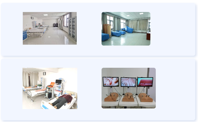 东院区建有2600平方米培训楼,内有阶梯教室3个,图书馆1个,电子阅览室1个,实训室5个;设有多站式考核间12站,计算机室1个,配套相关模拟培训设备供学员进行临床技能训练等。