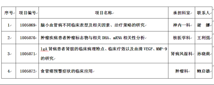 安阳地区医院2018年度科技攻关计划项目立项汇总表